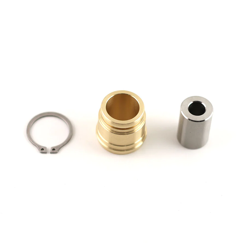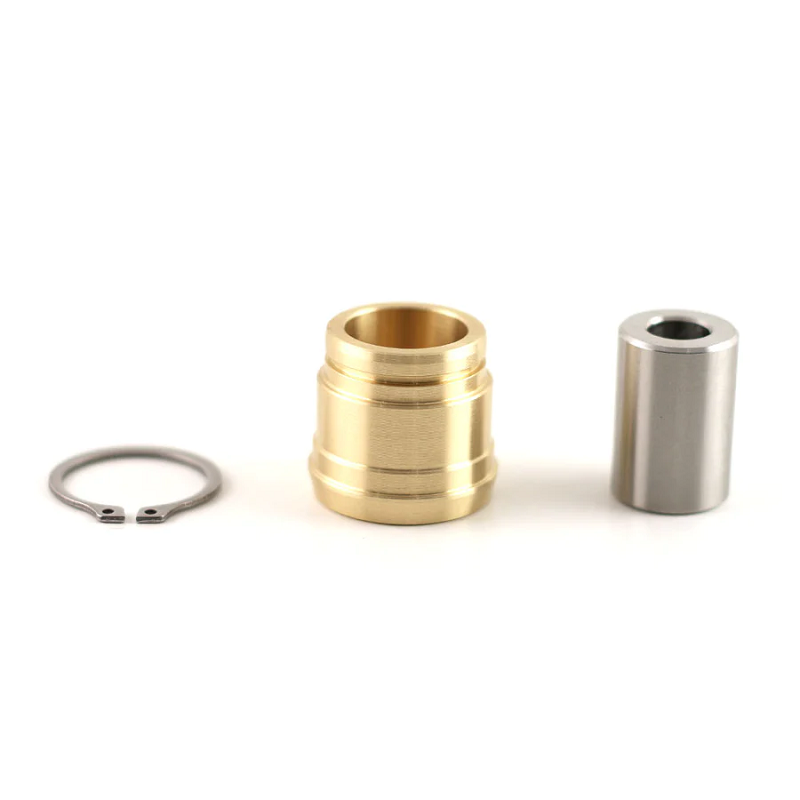 Presses into your rear swing arm in place of your T-motion heim joint to act as a solid, single-axis pivot to eliminate any side to side motion
