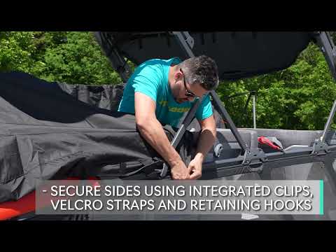 Heavy-duty, UV-resistant polyester canvas mooring cover keeps Switch interior dry and protected. Innovative clip system makes for easy, fast installation, and allows LinQ Lite accessories to remain attached to the rails while cover is in use. Interior pole system keeps cover elevated and prevents water pooling on the cover. Air vents at the rear allow increased air circulation. Compatible with Switch Bimini tops on Cruise and Sport models. Includes everything needed for immediate use.